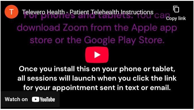 You can also access your appointments through the patient portal at TeleveroHealth.com/Portal